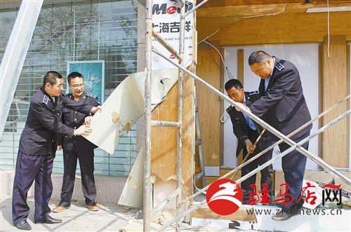 近日,驛城區(qū)綜合執(zhí)法局一片區(qū)負責(zé)人帶領(lǐng)20余名執(zhí)法人員對市區(qū)雪松大道與樂山大道交會處附近、雪松大道與富強路交會處附近三處亂搭亂建設(shè)施進行集中拆除,有效遏制各種違法違規(guī)建設(shè)行為。 記者 馬國省 攝