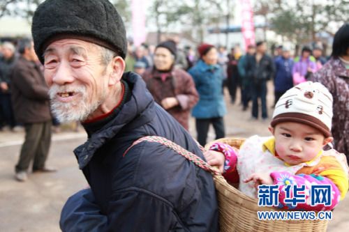 資料圖片:2010年2月4日,在中國四川省仁壽縣,一年近七旬的農(nóng)民帶孫女參加四川省仁壽縣首批新型農(nóng)村社會(huì)養(yǎng)老保險(xiǎn)金發(fā)放儀式。 新華社發(fā)