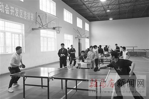 為全面貫徹實(shí)施《全民健身計(jì)劃綱要》,推動(dòng)職工健身活動(dòng)的深入開(kāi)展,日前,開(kāi)發(fā)區(qū)積極組織各鄉(xiāng)辦、區(qū)直及市直派駐單位職工代表參加選拔賽,表現(xiàn)優(yōu)秀的選手將代表開(kāi)發(fā)區(qū)參加全市職工運(yùn)動(dòng)會(huì)。圖為乒乓球選拔賽現(xiàn)場(chǎng)。記者 唐