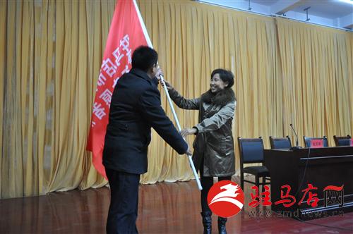 授青年志愿者服務(wù)隊(duì)隊(duì)旗。