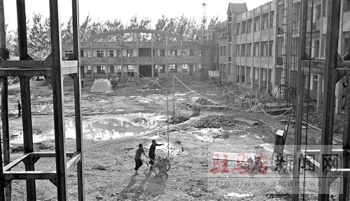 確山縣三里河鄉(xiāng)黨委、鄉(xiāng)政府,教育投資不欠賬。該鄉(xiāng)針對(duì)石(家莊)武(漢)高速鐵路過境占用部分校舍的現(xiàn)狀,邊調(diào)劑教室,邊及時(shí)征地籌款,高標(biāo)準(zhǔn)興建新校舍,確保學(xué)生正常學(xué)習(xí)。圖為該鄉(xiāng)后樓學(xué)校興建新校舍的施工現(xiàn)場。 首席攝影記者 吳忠富 攝