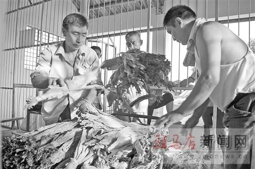 摘要: 8月16日,確山縣瓦崗鎮(zhèn)煙葉工作站的工作人員正在收購煙葉。該鎮(zhèn)是煙葉種植大鎮(zhèn),今年計劃種植面積1920畝,產(chǎn)量28.7萬公斤。連日來,豐收的煙農(nóng)紛紛來到煙葉工作站銷售煙葉,煙葉給當?shù)責熮r(nóng)帶來不菲的收入
