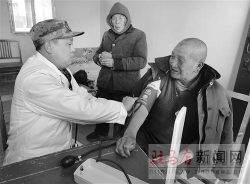 部隊醫(yī)生為石滾河鎮(zhèn)敬老院的老人檢查身體