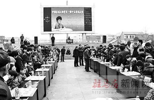 本報(bào)訊 2月5日,我市唯一的中國(guó)象棋大師黨斐在自己的家鄉(xiāng)確山縣,為鄉(xiāng)親們帶來(lái)了一場(chǎng)1對(duì)15閉目棋車輪大戰(zhàn)表演賽。比賽歷時(shí)3個(gè)小時(shí),黨斐以12勝3和的戰(zhàn)績(jī)完成了兔年的首次比賽。