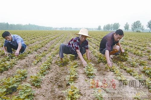 今年,為提高花生產(chǎn)量和質量,正陽縣在袁寨鄉(xiāng)、王勿橋鄉(xiāng)、蘭青鄉(xiāng)等三個鄉(xiāng)鎮(zhèn)推廣花生起壟種植5萬畝。為讓起壟種植技術得到推廣,該縣為農戶每畝提供種子、肥料等500元農資。眼下,花生進入管理期,正陽縣袁寨鄉(xiāng)周莊村的農民紛紛來到起壟種植的田間為花生間苗。 通訊員 高萬寶 攝