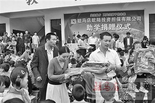 黃玉東是汝南縣板店鄉(xiāng)魏嶺村一位青年農民,早年因家境貧困輟學而外出打工、創(chuàng)業(yè)。他干過建筑工、礦工,又先后創(chuàng)辦了大型養(yǎng)殖場和投資擔保公司。六一兒童節(jié)前夕,他為家鄉(xiāng)魏嶺小學200多名師生捐贈近萬元的學習用品。圖為捐贈現(xiàn)場。 記者 王振江 閆平安 攝影報道