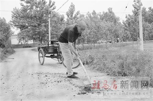 汝南縣金鋪鎮(zhèn)74歲的孫生財老人十五年如一日,騎著三輪車堅持義務(wù)修路30多公里,橋梁3座,疏通涵管10多個。在他的修補(bǔ)和管護(hù)下,該鎮(zhèn)的幾條重要道路都十分平坦,村里群眾外出方便多了。老人義務(wù)修路護(hù)路的精神感動了周圍的村民,村民為他送來了10多面錦旗和20多封感謝信。為支持他義務(wù)修路,金鋪鎮(zhèn)有關(guān)領(lǐng)導(dǎo)為老人買了輛嶄新的三輪車,并為他老兩口辦了農(nóng)村低保。孫生財老人動情地說:“黨和政府這么關(guān)心我,只要我還能動,我就會堅持干下去。”圖為老人正在修補(bǔ)潘灣村一條路的路面。 記者 劉仁忠 通訊員 李勤玲 攝影報道