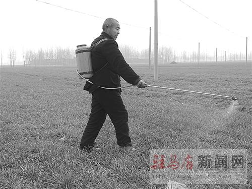 日前,汝南縣在組織全縣干部群眾抗旱澆麥的同時,積極引導(dǎo)農(nóng)民進行春季麥田管理,現(xiàn)已有80萬畝小麥噴灑了除草劑和殺蟲劑。圖為老君廟鎮(zhèn)雷莊村肖莊村民組農(nóng)民正在麥地里噴灑除草劑。記者 劉仁忠 通訊員 呂 娜 攝影報道