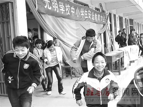 在第十五個教育安全日到來之際,上蔡縣教育部門以“加強疏散演練”為主題開展了一系列的活動,廣大師生的安全意識和自我保護能力有了提高。圖為