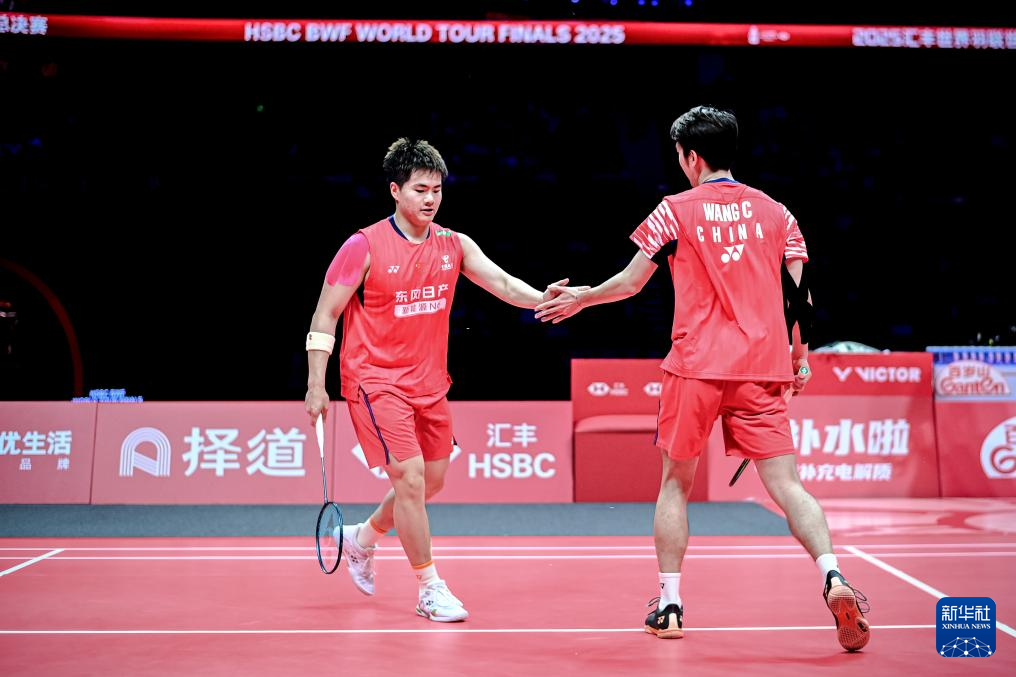 12月21日,中國(guó)組合梁偉鏗(左)/王昶在決賽中慶祝得分。